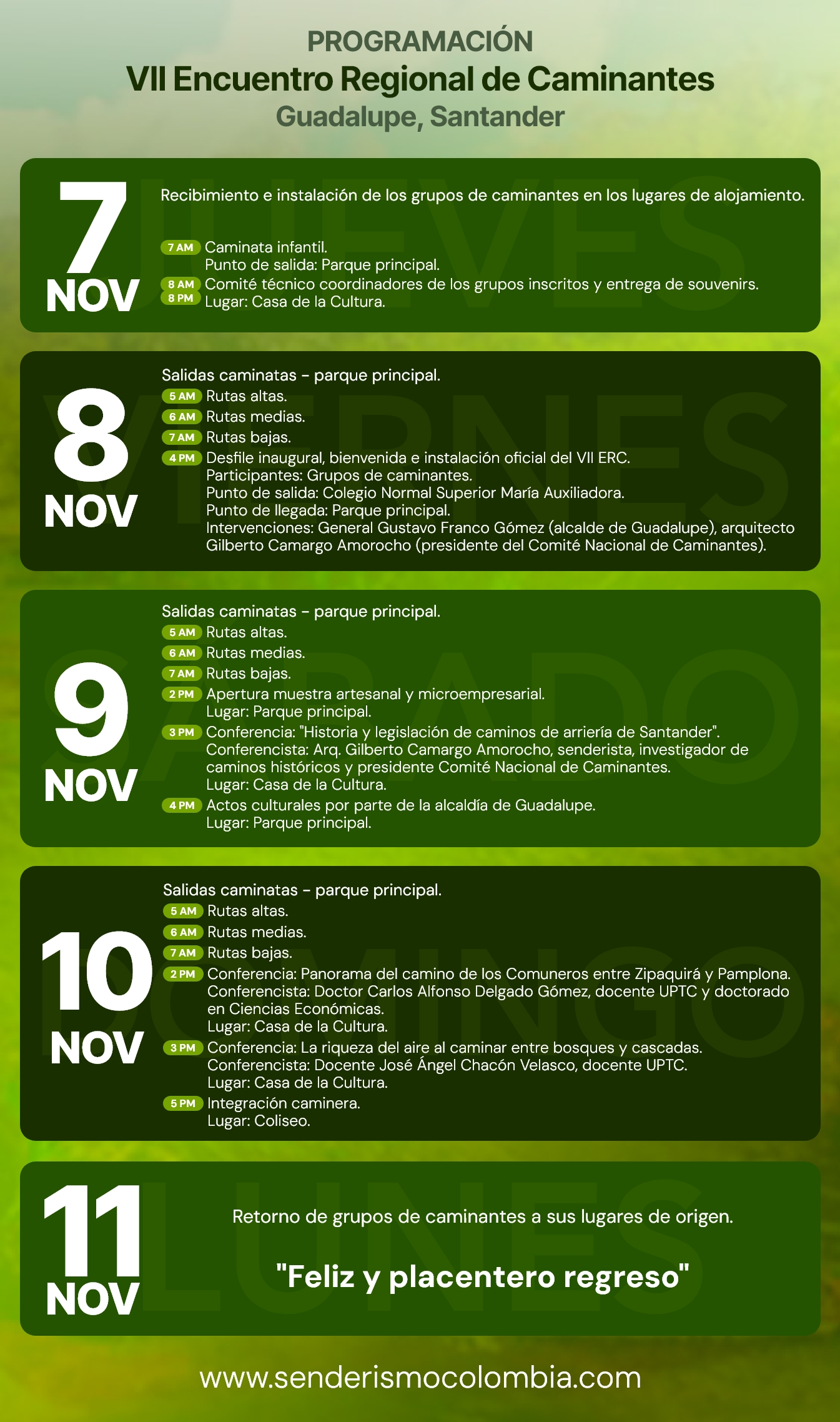 Durante tres días, los participantes podrán disfrutar de una variedad de rutas que destacan la belleza del paisaje de la Hoya del Río Suárez, la gastronomía y el legado cultural e histórico de Guadalupe y sus municipios vecinos.