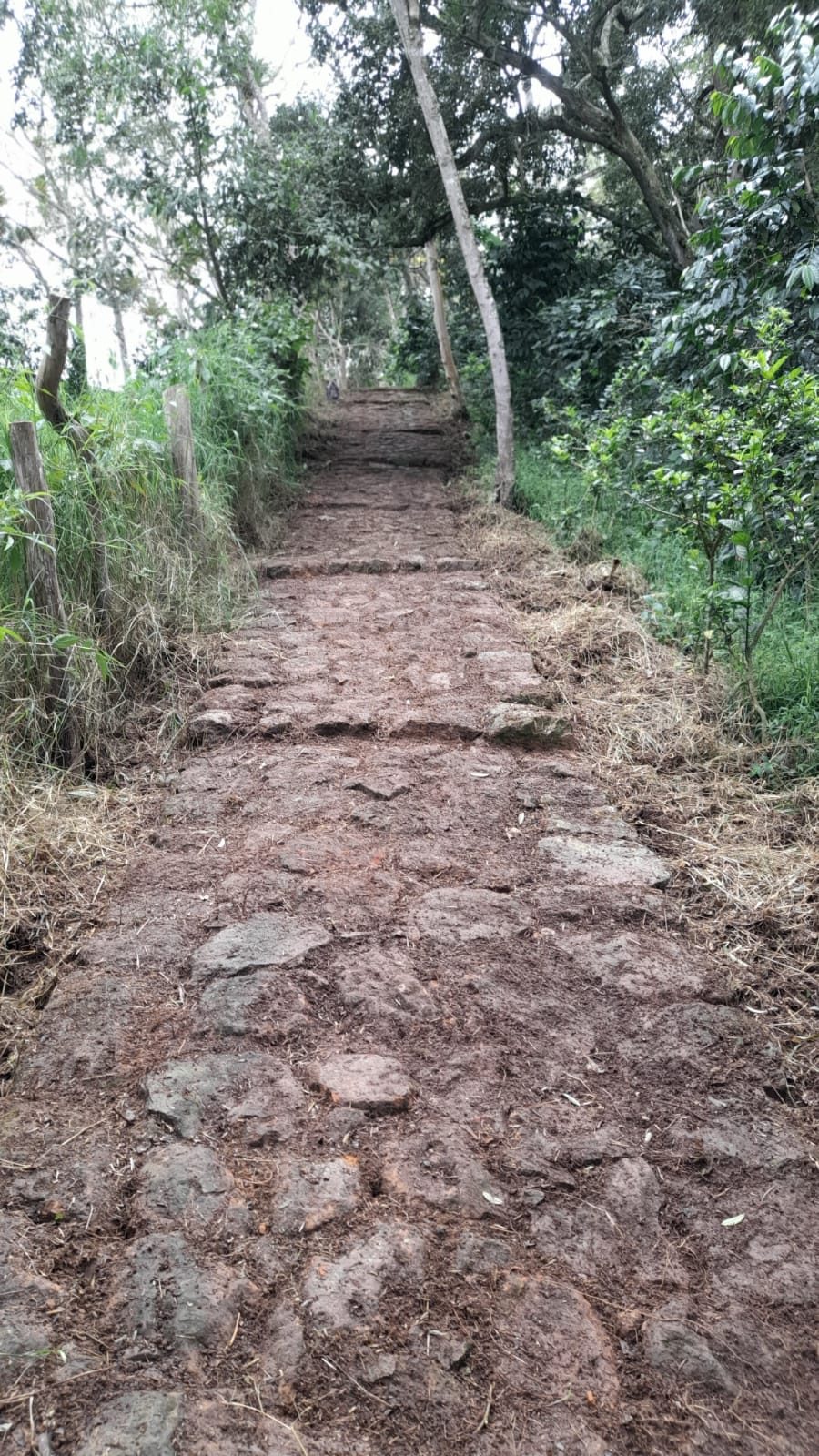 Desde allí se avanza al Tejar de Las Puentes para luego llegar a la zona del aeropuerto, donde se toma el histórico Camino de Lengerke, un tramo patrimonial construido en piedra que conserva el legado caminero del siglo XIX. Este camino guía la travesía hacia la vereda Santa María, un sector de relieve ondulado y amplias panorámicas.